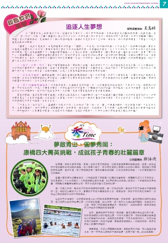 好的準備。除了培養基礎學力外,康橋的菁英課程,也正是為此發展。從異齡學習,樹立學習典範;藉由登山活動,落實「學以致